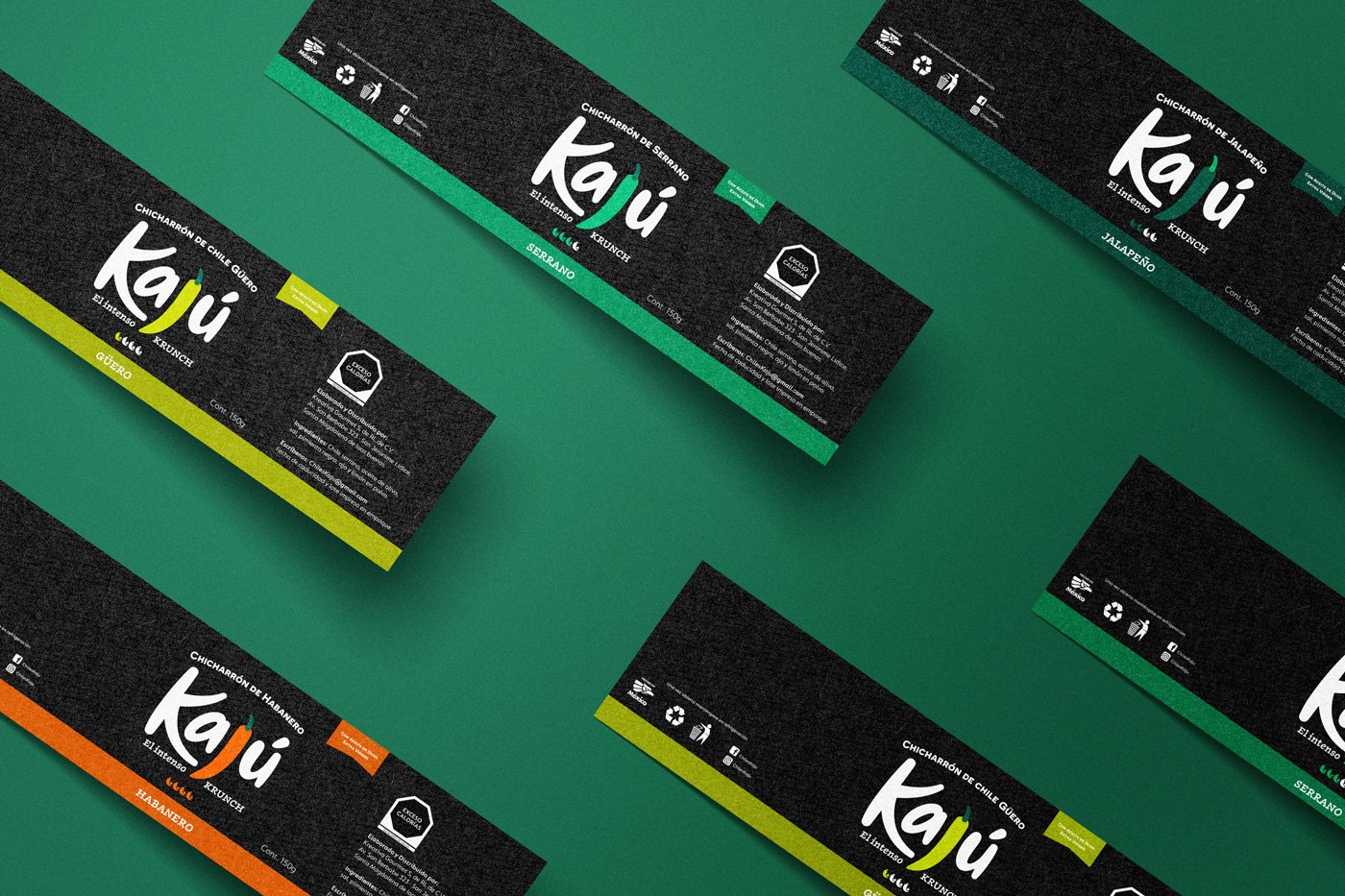 El reto fue construir una marca que no solo comunicara tradición y sabor, sino también una historia real de crecimiento, perseverancia y amor. Así nació KAJÚ, una fusión natural entre los nombres de Karen y Juan Pablo, evocando el origen humano y cercano de la marca. Acompañado de una identidad visual cálida, artesanal y moderna, logramos transmitir el carácter único de sus chiles: calidad con alma y sabor con tradición. Gracias a esta nueva identidad, KAJÚ consolidó una marca con propósito, conectando emocionalmente con sus consumidores y abriendo camino en un mercado que valora tanto el sabor como el origen y la autenticidad.